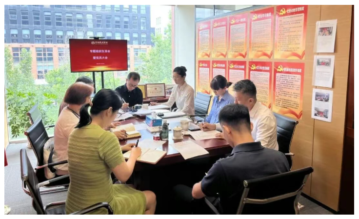 首先,党支部全体重温入党誓词,回顾入党历程,强化初心使命。随后,党支部副书记白啸峰汇报2025年上半年党建工作,并传达了第二季度全联直属商会秘书长会议精神,强调应加强商会职业化、专业化建设,深入贯彻中央八项规定精神学习教育,就加强政治引领、服务行业和会员企业发展、履行社会责任等重点工作进行了汇报。党支部杨宗岳在会上传达了全联警示教育大会精神,提出党员应当增强廉洁自律意识,筑牢作风防线,深入培养警示意识和纪律自觉。
