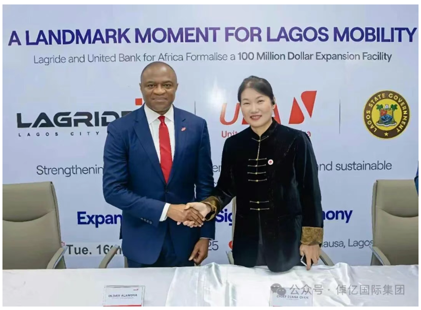 倬亿国际集团旗下智慧出行平台Lagride,近日成功获得非洲联合银行(UBA)提供的1亿美元战略融资。2025年12月16日,双方在Lagride位于拉各斯Alausa的总部举行了隆重的签约仪式。本轮资金将重点用于升级拓展“先开后买”项目,旨在赋能广大拉各斯司机实现从日常从业者到资产拥有者与出行投资者的实质性跨越,标志着拉各斯乃至尼日利亚在构建包容性增长和可持续城市交通体系方面迈出关键一步。