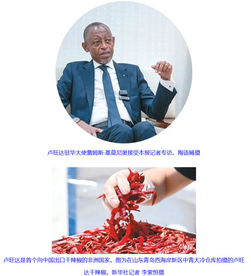 “我们很高兴,改变正在发生。”他说,卢旺达—湖南辣椒产业示范项目正在带动卢旺达当地农户种植技术升级,许多农场开始使用有机种植和信息化管理,提高辣椒的产品质量和可追溯能力。也有中国企业正在洽谈在卢旺达建设现代化咖啡加工厂,致力于提升产品附加值,增强出口竞争力。
