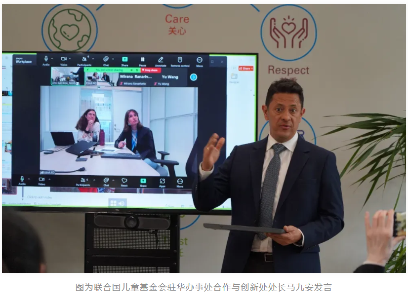 联合国儿童基金会驻华办事处合作与创新处处长马九安介绍了驻华办事处的职责定位及在华合作成果,联合国儿童基金会驻西部和中部非洲、东部和南部非洲区域团队通过线上分享了非洲儿童在健康、教育、气候行动等领域面临的挑战及企业参与合作机会。来自企业的代表,以及商会实习生、 青少年代表参加活动并进行交流。