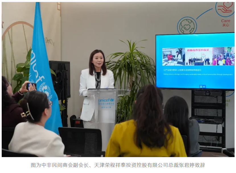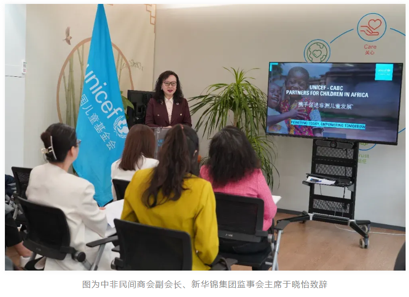 中非民间商会副会长、新华锦集团监事会主席于晓怡在致辞中表示,商会愿与联合国儿童基金会加强协同,根据需求为在海外投资会员企业提供指导或培训,助力企业在非洲实现社会价值与商业价值双赢。她强调,要将爱心转化为行动、以行动催生成果,期待以本次活动为新起点,整合资源、拓展合作、贡献力量。