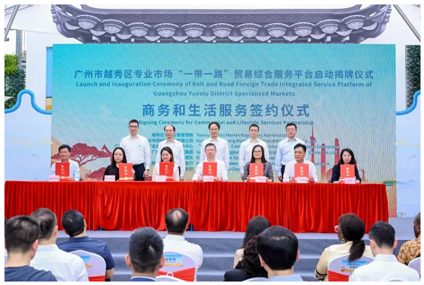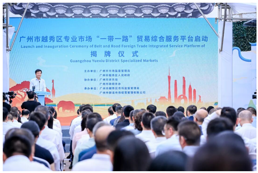 9月19日上午,由广州市市场监督管理局、越秀区人民政府主办,越秀区市场监督管理局与广州市御龙市场经营管理有限公司联合承办的“广州市越秀区专业市场‘一带一路’贸易综合服务平台”启动揭牌仪式,在御龙外贸服装城6楼主会场圆满举行。